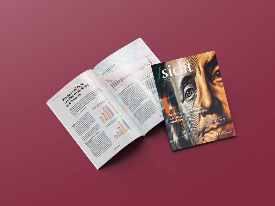 Unser Ziel ist es, für Sie auch in Bezug auf Anlageinformationen die erste Bank zu sein. Darum haben wir das Anlagemagazin /sicht entwickelt. Es enthält aktuelle Einschätzungen unserer Expertinnen und Experten aus dem Investment Center zu den Entwicklungen an den internationalen Finanzmärkten, im Bankgeschäft und der Ostschweizer Wirtschaft. Zudem profitieren ausgewählte Paketkundinnen und -kunden von zusätzlichen exklusiven Inhalten, wie Anlageempfehlungen, Opportunitäten oder spannenden Interviews.