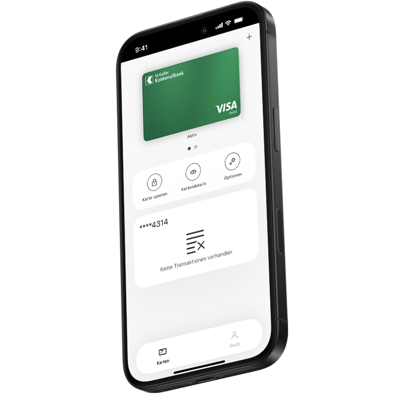 Sperren und entsperren Sie Ihre Debit- und Kreditkarten jederzeit selbständig und bequem über die Anwendung «Kartenverwaltung» in der SGKB App oder im E-Banking unter «Services» > «Kartenverwaltung».