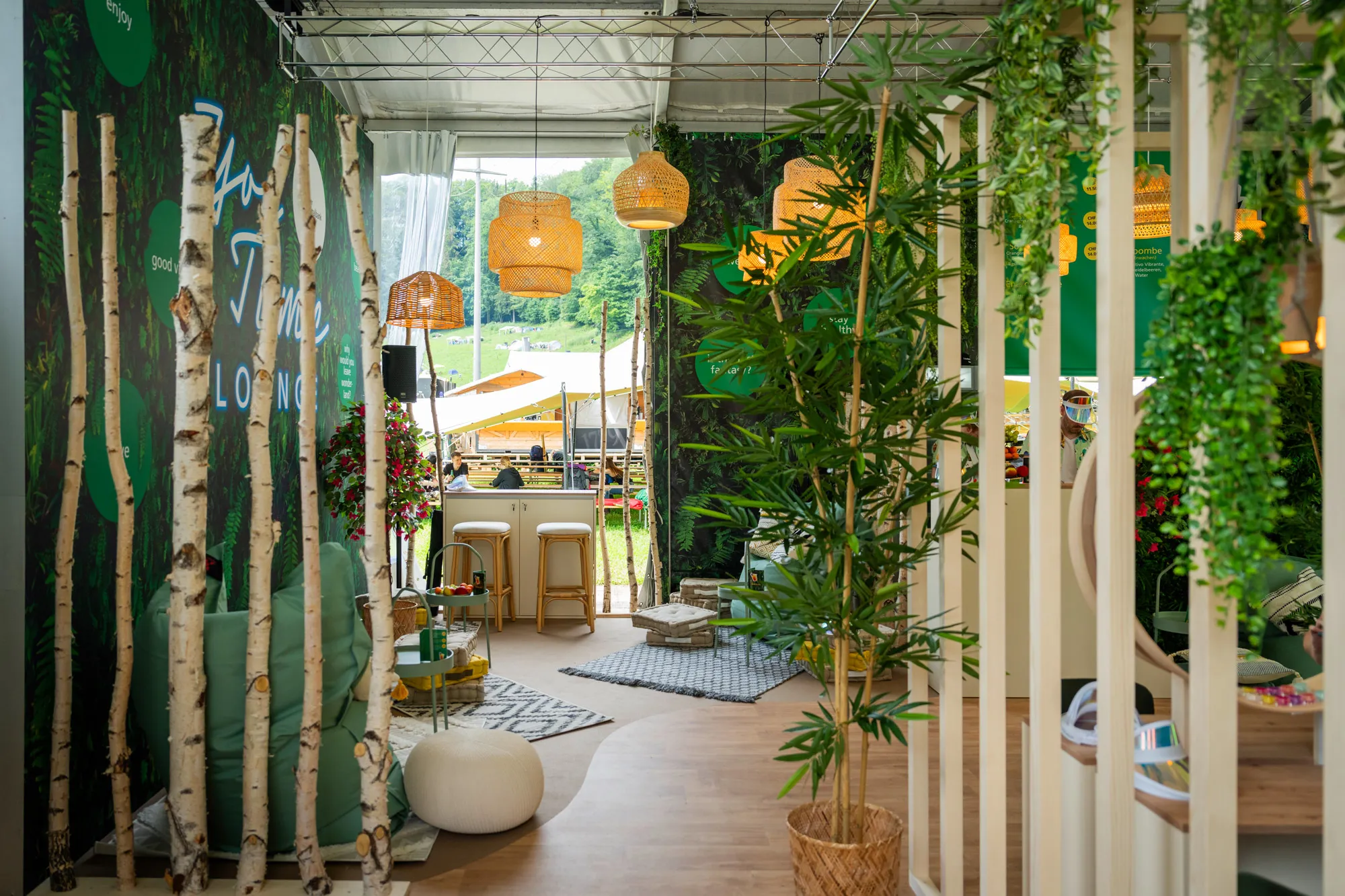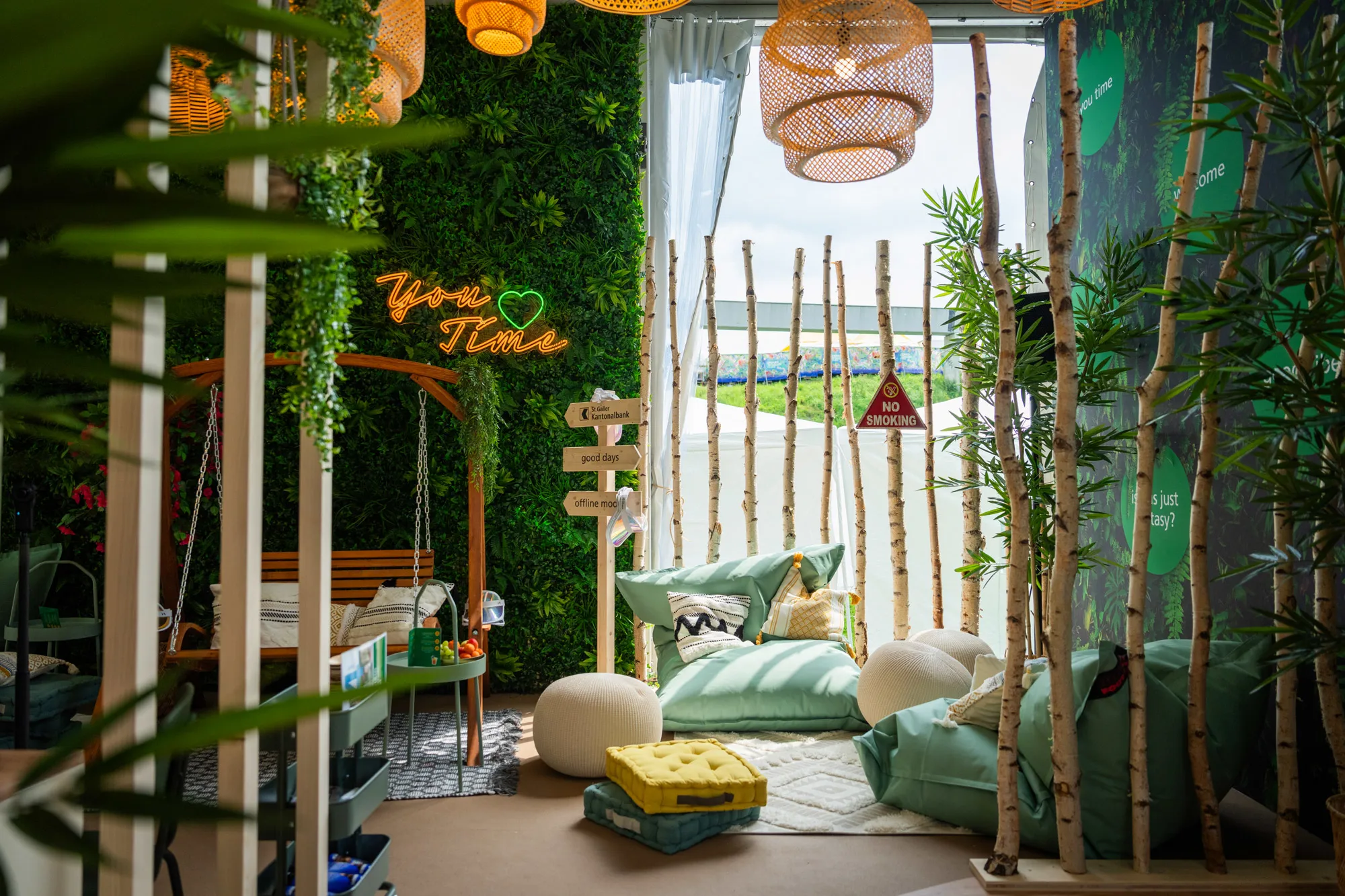 Exklusiver Zeltplatz direkt neben dem Backstage-Bereich der Sitterbühne auf grünem Rasenteppich