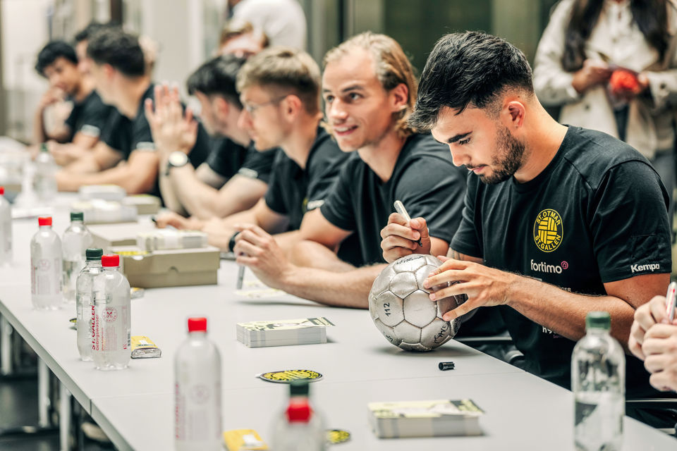 Die komplette erste Mannschaft des TSV St.Otmar war am Hauptsitz in St. Gallen zu Gast und erfüllte geduldig jeden Selfie- und Autogramm-Wunsch der grossen und kleinen Fans. Die SGKB ist seit vielen Jahren Sponsoringpartnerin des traditionsreichen Handballclubs.